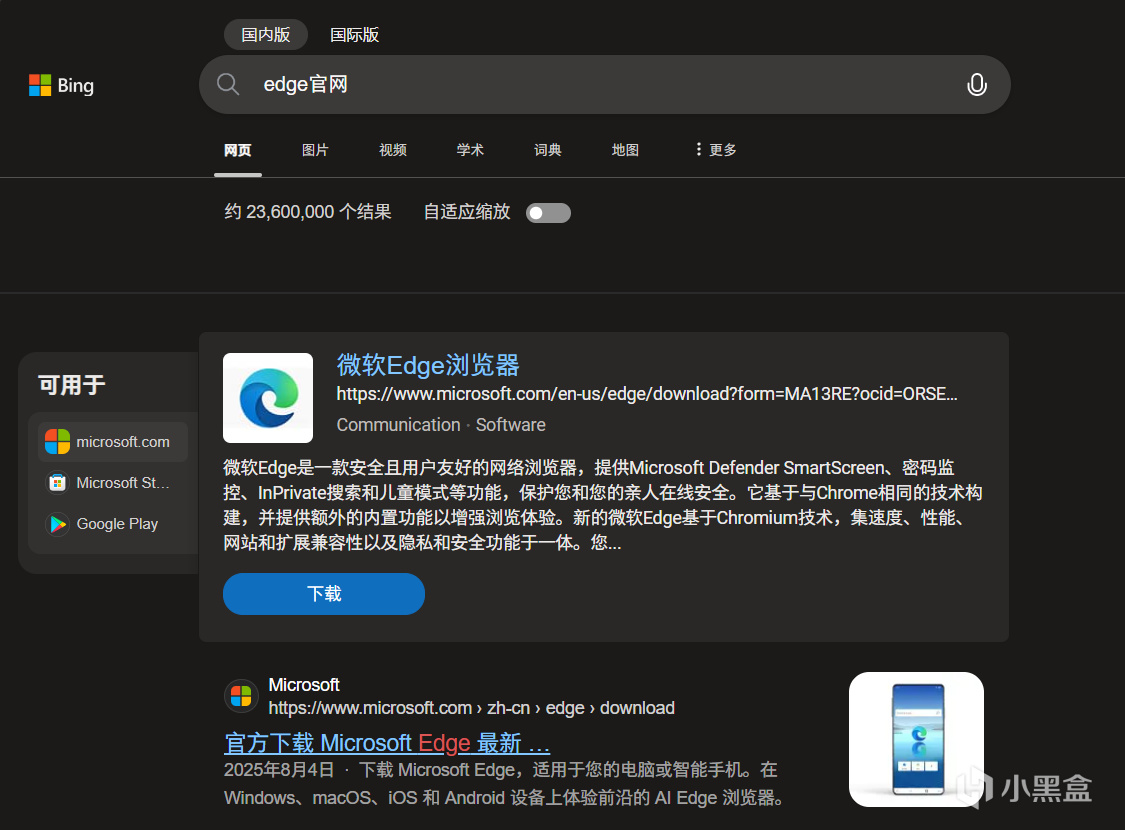 大多数手机的应用市场都会有Edge浏览器,直接下载就行(以lz红米手机为例)