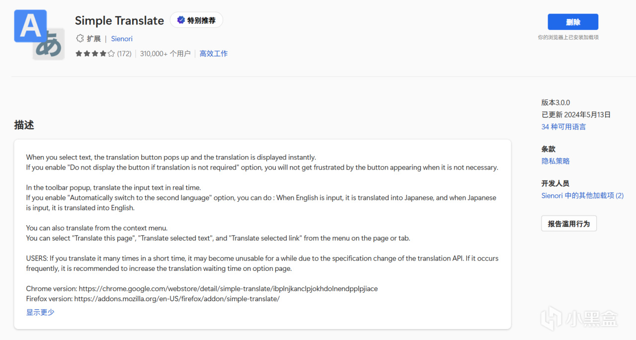 特别推荐,非常好用的翻译拓展,能够翻译整个网页,翻译速度也很快(偶尔会有不显示的bug,关闭网页重新进就可以了)