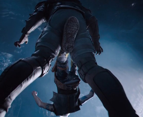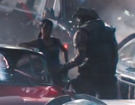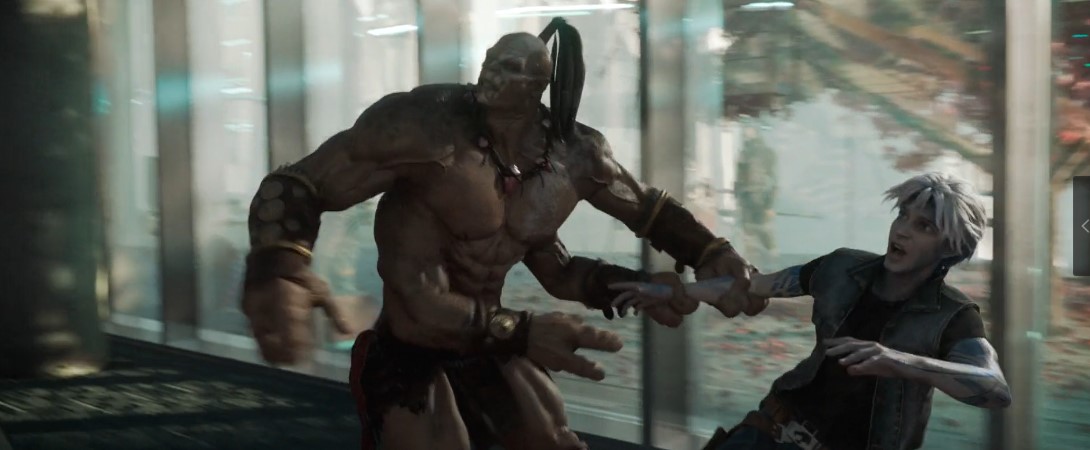 【韦德】赢得第一场挑战后,再次来到资料馆时,把他拖走的是《真人快打》中的【戈洛】(女主)。