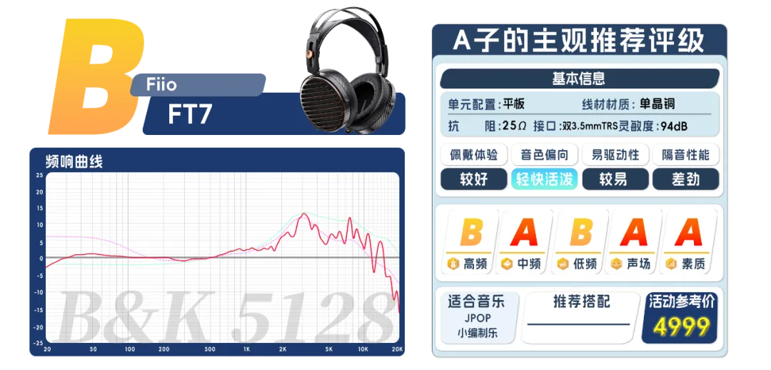 總的來說,FT7是一支大體均衡,較爲凸出女聲和絃樂表現的耳機。