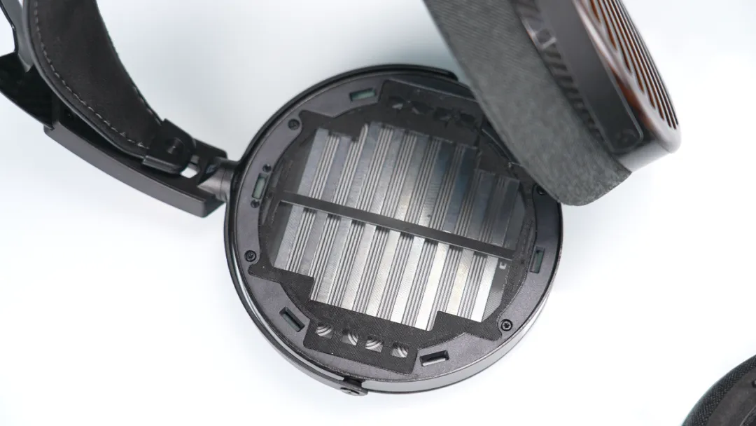 而拆下耳罩,可以看到內側則是銀色,兩側各有一層紗網保護