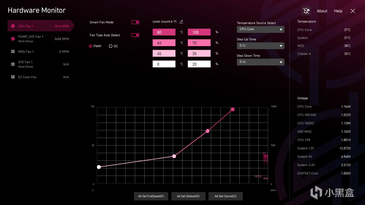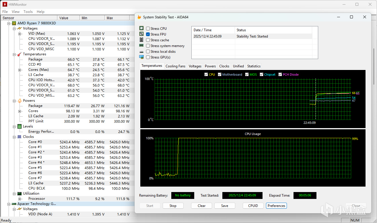 滿負載運行後,處理器溫度穩定在 66℃左右,供電 MOS 溫度控制相近,主動散熱風扇轉速溫和,噪音幾乎可以忽略不計。