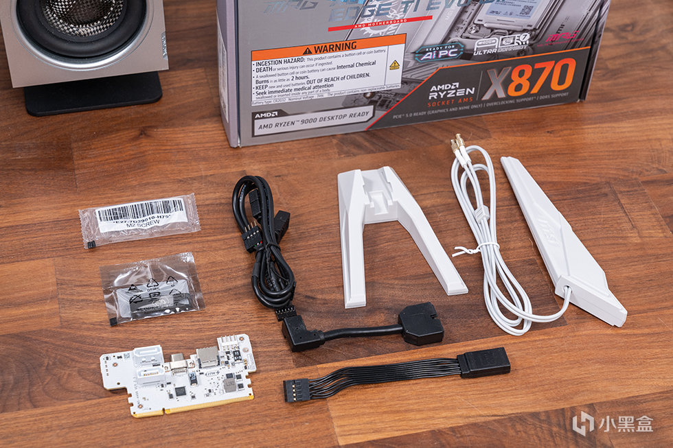 隨附配件除了常規的說明書貼紙外,還提供了EZ Wi-Fi 天線、XPANDER 擴展卡、1條5合 擴展卡USB連接線、1 根 EZconn三合一擴展線,1根 EZ FRONT PANEL 前面板延長線、M.2 硬盤固定螺絲以及驅動U盤。