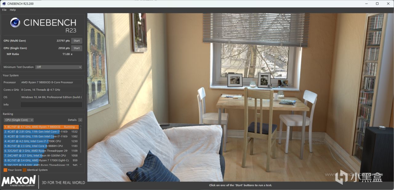 CPU 性能測試中,CPU-Z 單核得分達到 801.4,多核得分 8839.2,這一成績充分發揮了 Ryzen 7 9800X3D 的多核性能,相比同級別主板,沒有出現因供電不足導致的性能損失。在 Cinebench R23 測試中,單核得分 2058,多核得分 22797,V-ray得分27096,能夠輕鬆應對視頻渲染、3D 建模等重度負載任務,