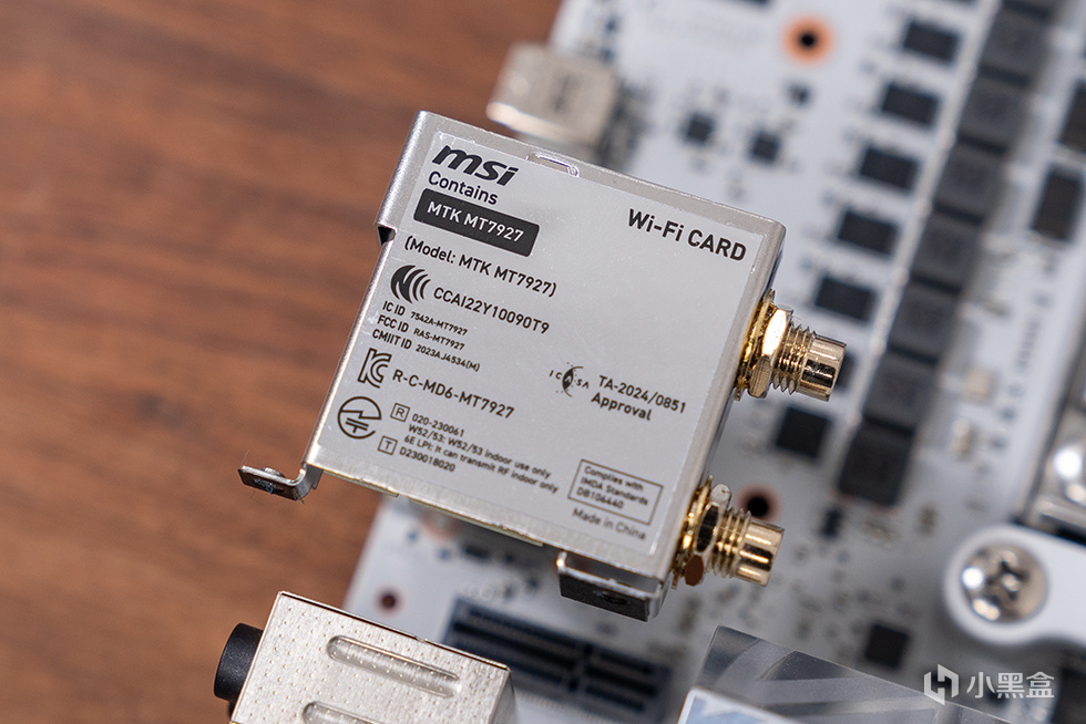 背部IO部分採用了物理子卡的設計,上層PCB主要用於擴展4個USB 10Gbps Type-A接口,由瑞昱RTS5420芯片擴展,底部的2個USB 4接口由ASM4242 芯片負責,可提供64Gbps的帶寬,支持100W快速充電和PCIe標準,可以向後兼容Thunderbolt 3和USB 3.2 Gen2×2等模式,提供了更靈活、更具彈性的功能集成選擇。