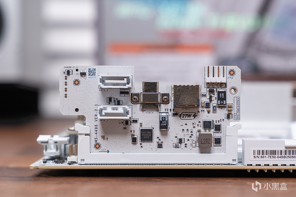 除了常規接口,在正面SSD插槽位通過BTB轉接板拓展了1個5V3針的ARGB插針和USB 2.0插針, 5 in 1 XPANDER卡則額外提供了2個SATA接口,一個Type-C 20Gbps接口(支持27W快充),一個前置USB 3.0接口拓展以及一個4Pin的蜂鳴器接口。