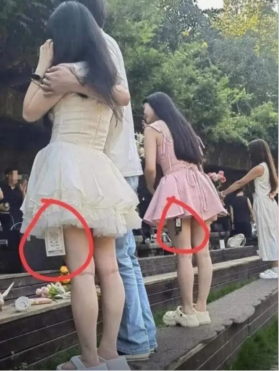 而第二段裏更是直接進入了兩名女性的拍攝範圍,不僅不怕被拍照記錄,拍照的人也不提醒玩伴有人鬼鬼祟祟的靠近,顯然是不合常理的。