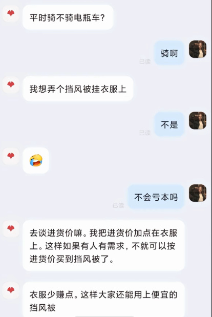 但說真的,調侃歸調侃,但看着從女裝的巨型硬塑料吊牌,到男裝的鼠標墊、擋風被,這背後全是小商家的無奈。誰不想安安穩穩賣貨,誰願意花心思搞這些抽象操作?還不是被那些“穿完就退”“惡意索賠”的人逼得沒辦法。