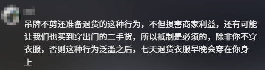 而那些想要好好買衣服的,剪掉吊牌照樣穿,更不用擔心之後會買到別人退貨回來的二手服裝,可以說這個做法是完完全全的雙贏。