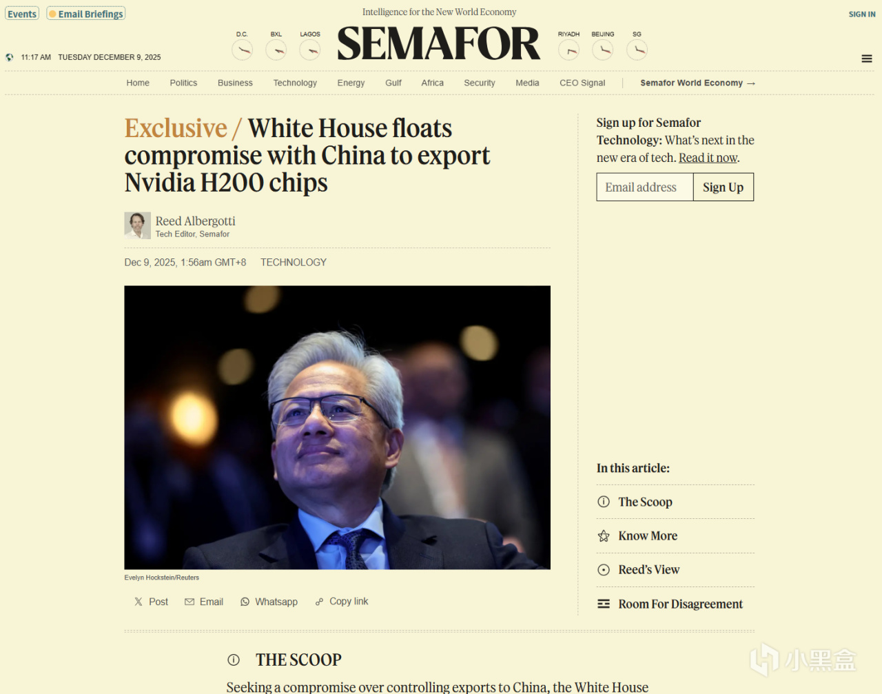 根据Semafor报道,有知情人士透露,为了在控制对华出口问题上寻求妥协,白宫计划指示美国商务部允许英伟达(NVIDIA)向中国出口H200 GPU。