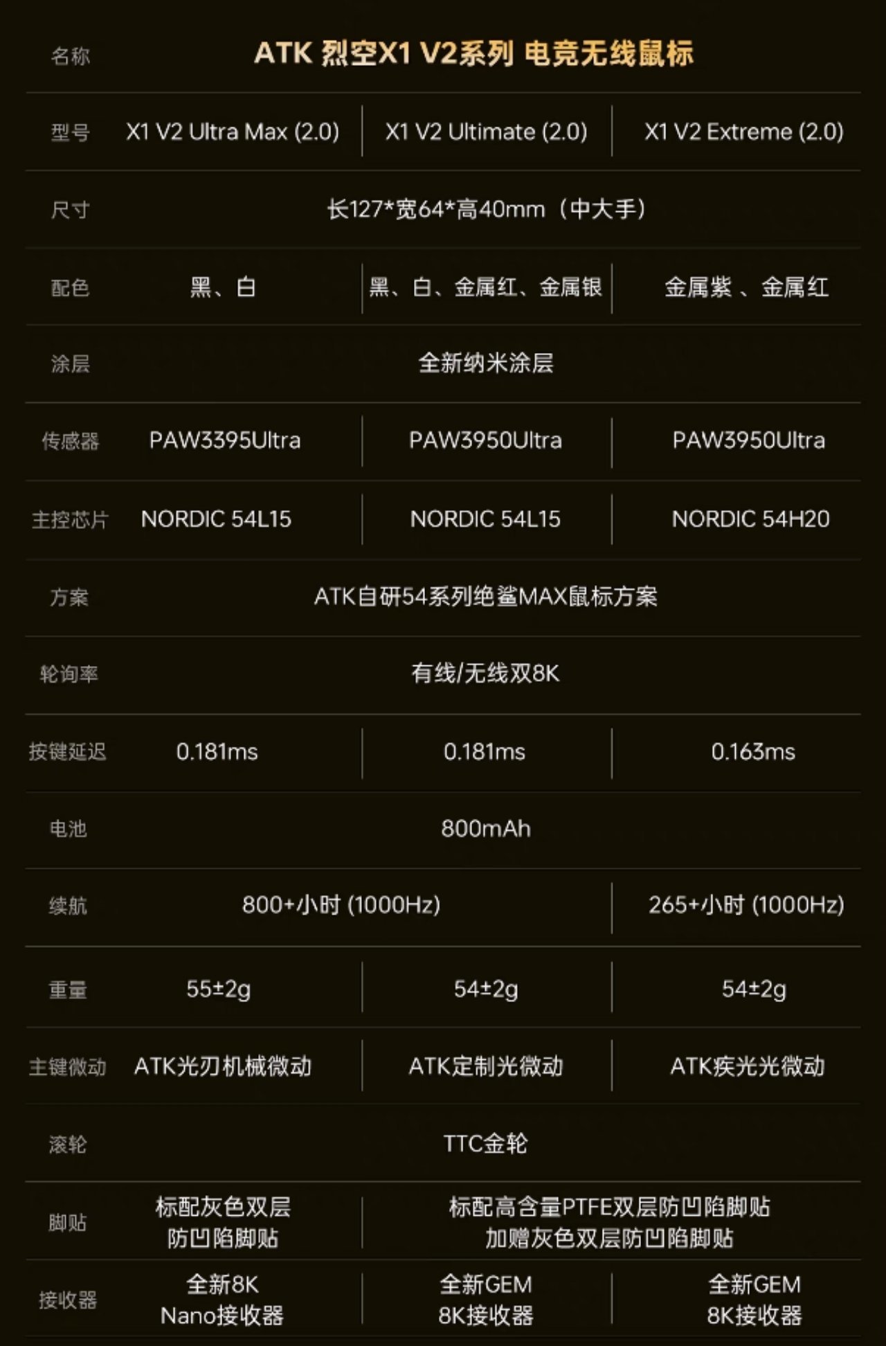再来说说X1V2系列的配置,它与雷柏VT系列类似,为了满足不同预算玩家的需求,它提供了三种选择,不过其Ultra MAX配置已经让我感觉到非常的“旗舰”,更别说更强的大师版和探索版了!