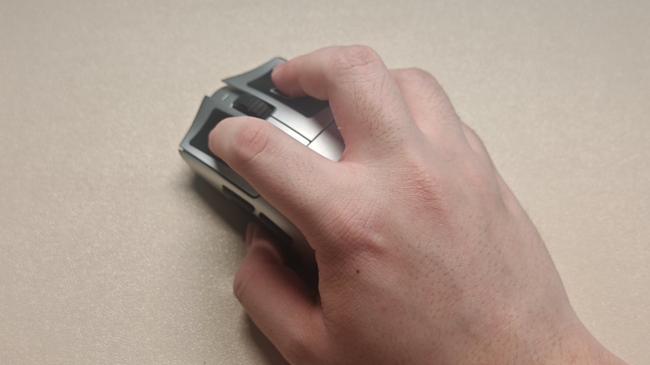 我是个中大手玩家,个人感觉这款鼠标无论是抓握还是趴握都非常的合适;趴握时掌心能够非常完全的贴合鼠标背部,没有一丝悬空感;