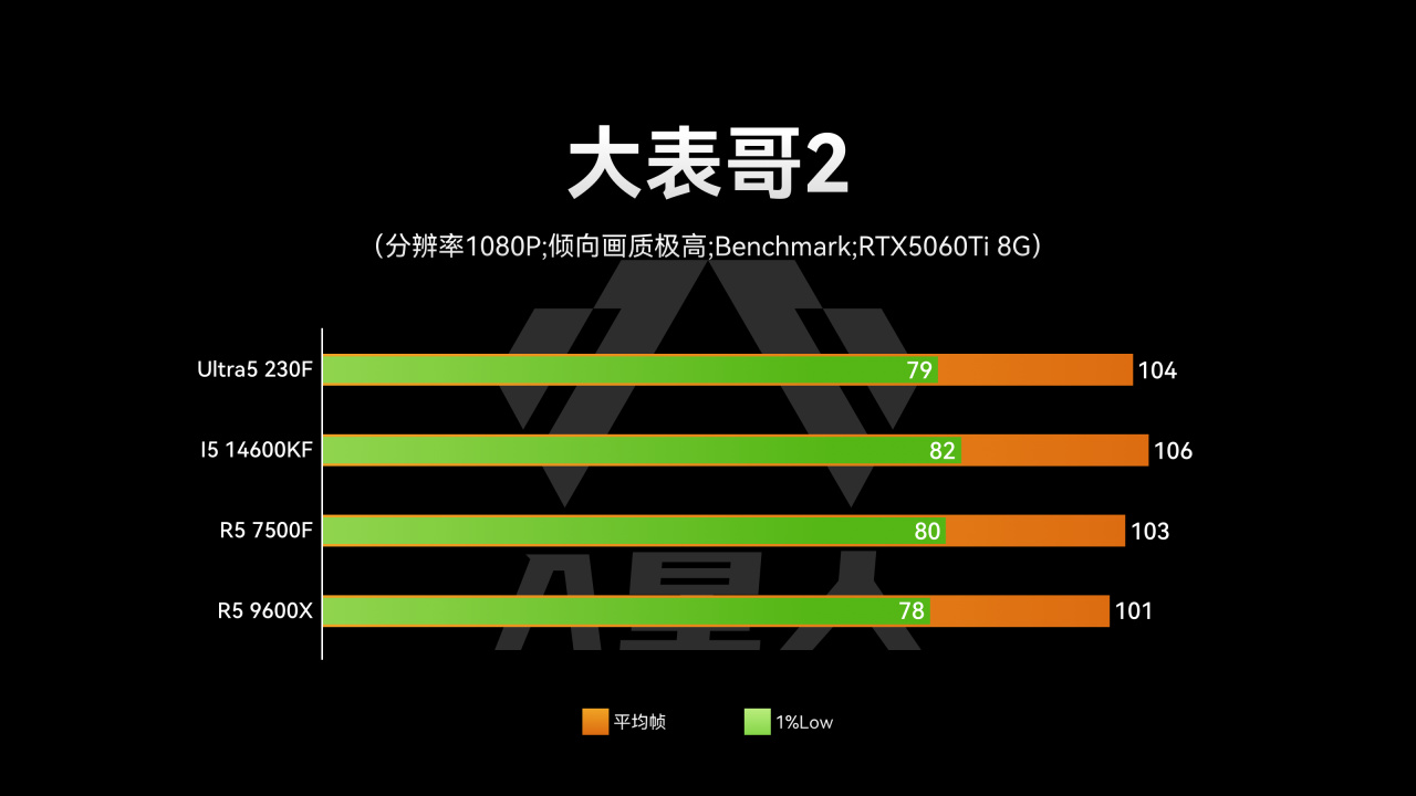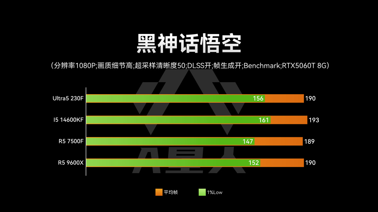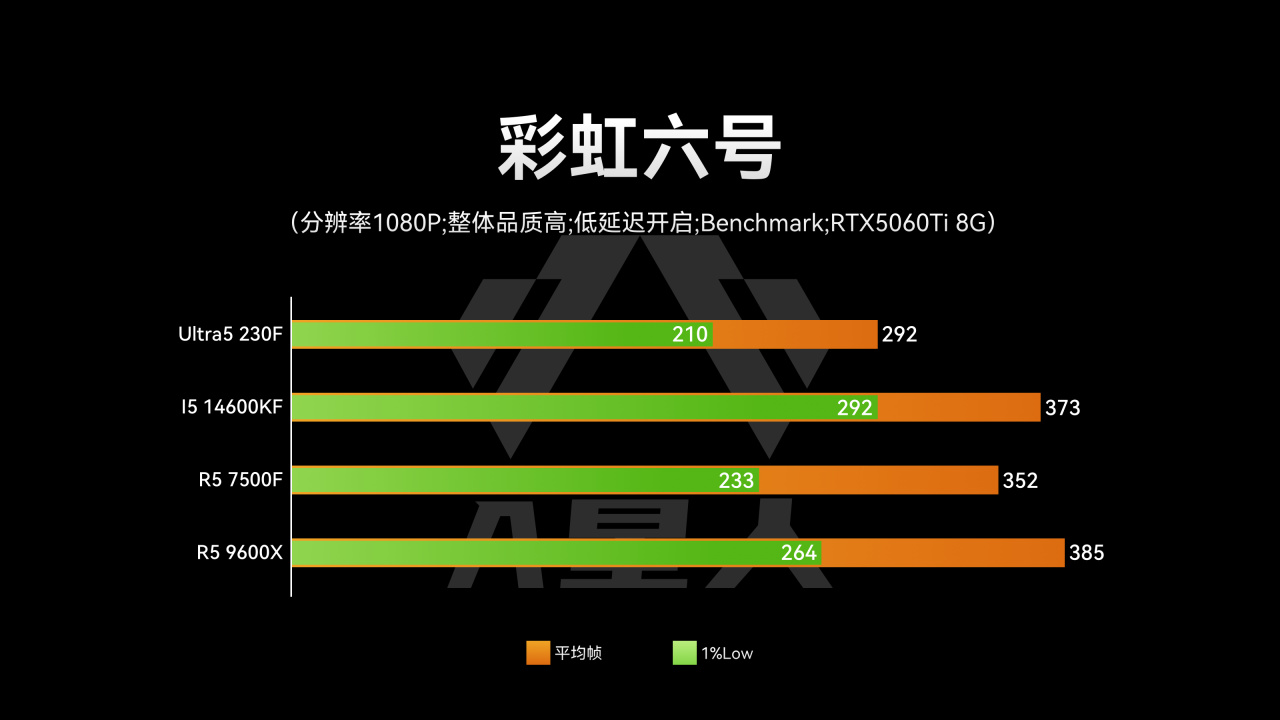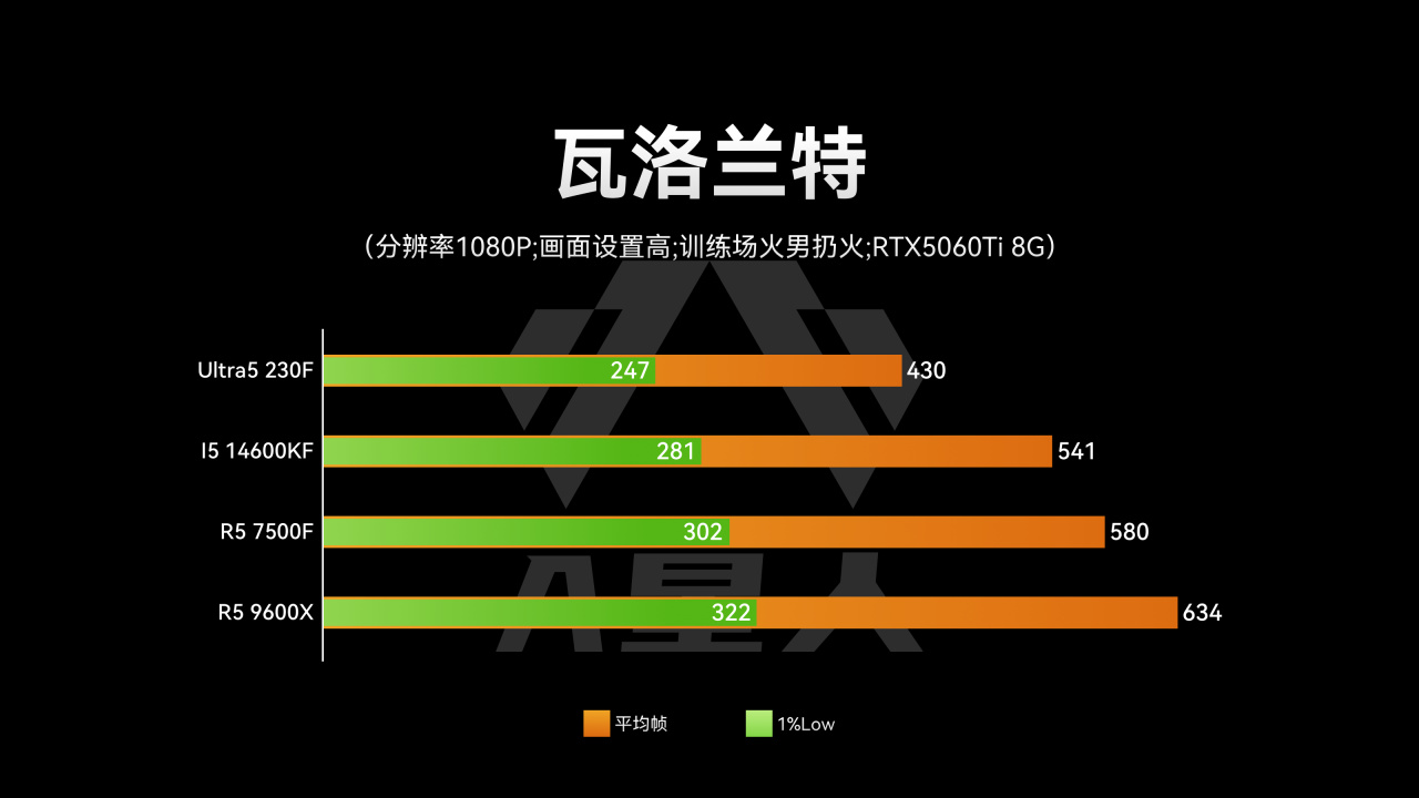 9600X领先幅度稍微有一点大,平均帧和Low帧,领先自家7500F 30帧左右。