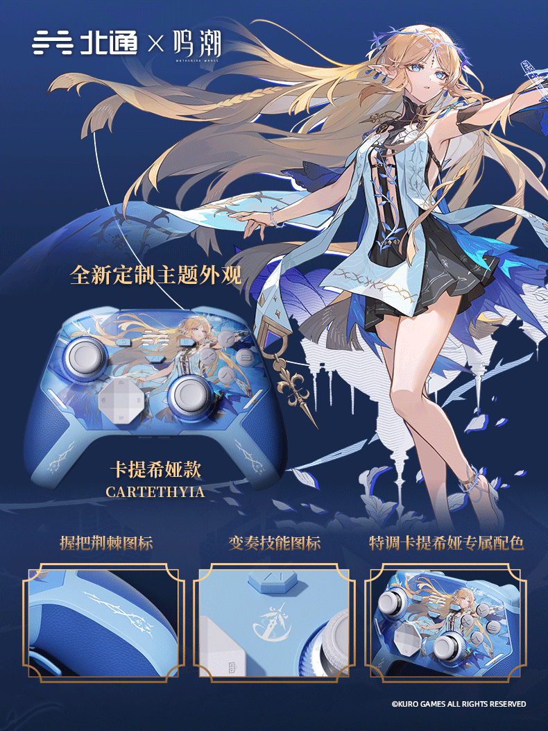 今日,库洛游戏周边官方周边品牌公布与@北通BEITONG合作推出的【卡提希娅 & 弗洛洛】联名款手柄详情。