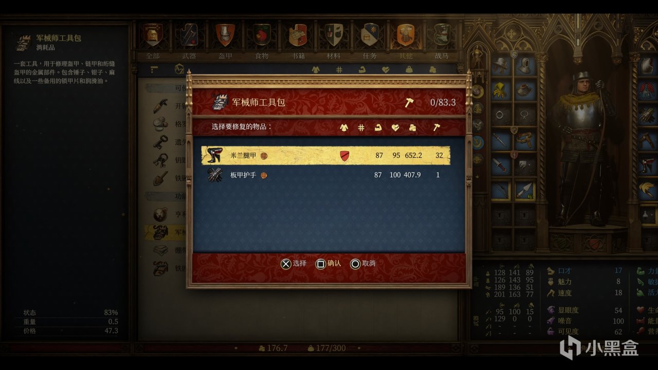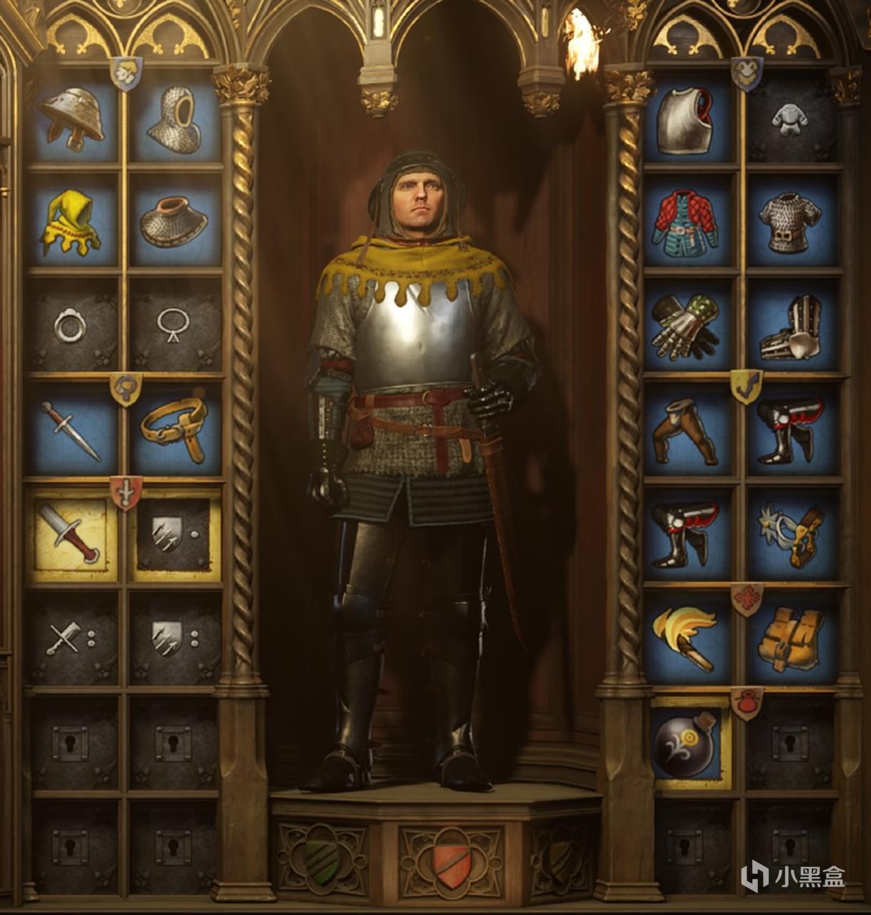 拿到装备后,直接去旁边铁匠安排的小屋里开睡,睡醒了就等,等困了继续睡,一直到偷窃物品的标志消失,大概能获得这么一身,能用到第一章结束。