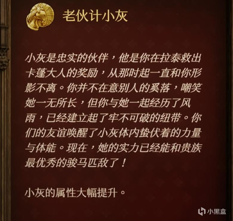 提前让亨利吃撑,骑着小灰去下图点位开启自动寻路。而你我的朋友,你可以去吃饭或者小睡一会儿,回来后获得“老伙计小灰”特性和大量马术经验