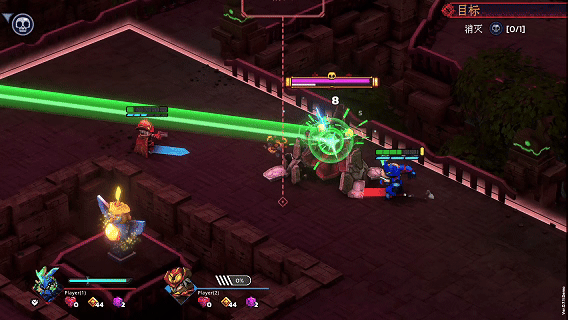 自《哈迪斯》之后,动作肉鸽游戏已经屡见不鲜,但可以联机的动作肉鸽却很少见。独乐乐不如众乐乐,和朋友一起乱刀砍死BOSS。一人贴脸拉仇恨,走位躲伤害;一人远点稳定输出。队友倒地,还可以复活队友,多了一层容错。