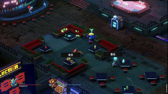 在局内商店房间,可以购买各种通用和技能强化。让凯尔向身后发射子弹,前后双向射击;让五郎基于失去的生命值,获得攻速/伤害加成(叠攻速到极致)。不过,游戏前期的金币奖励比较少,打完第一个房间可能买不到技能/强化。希望正式版能够提高前期奖励,加快大家构筑成型的速度。