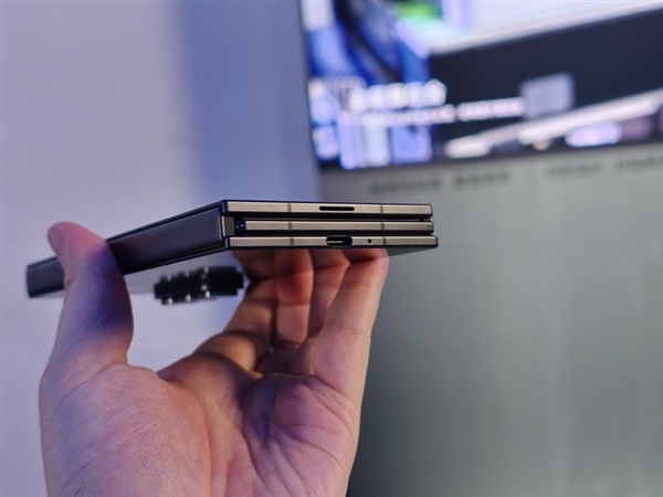 为了提升机身强度,三星Galaxy Z TriFold的边框采用了增强型装甲铝材料,铰链盖则是采用了钛金属材质。机身背部采用的是陶瓷玻纤背板。