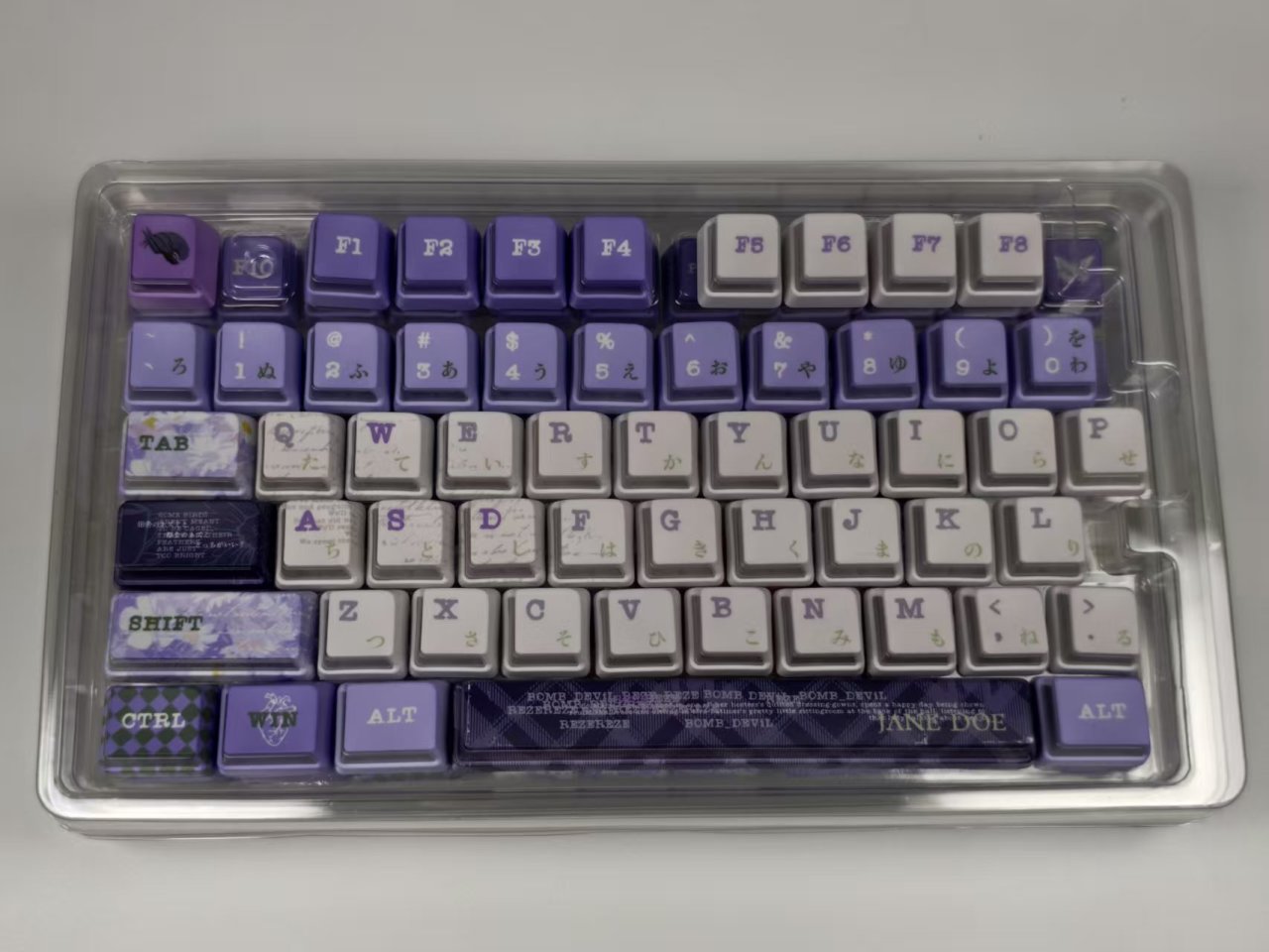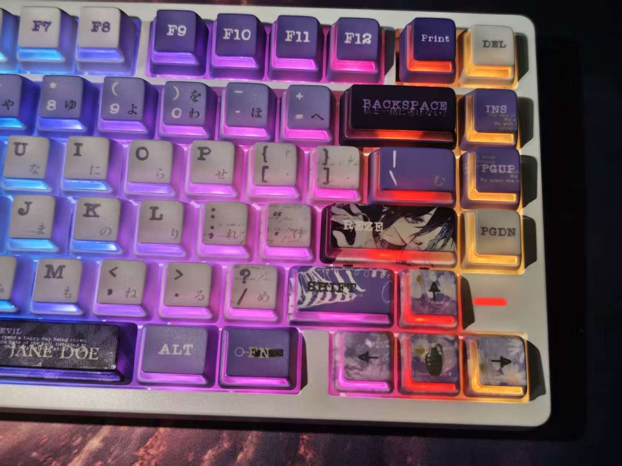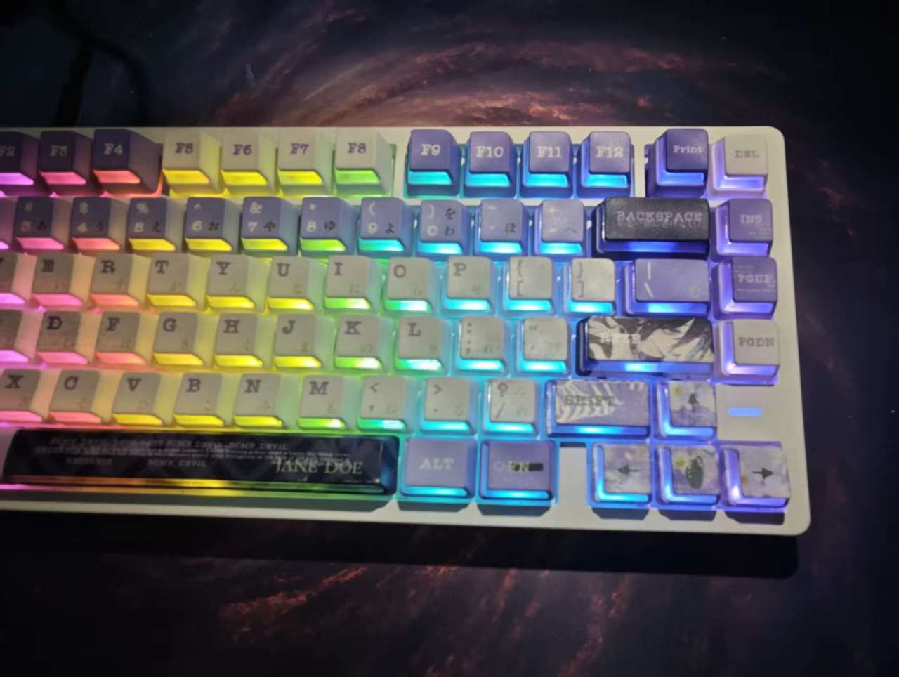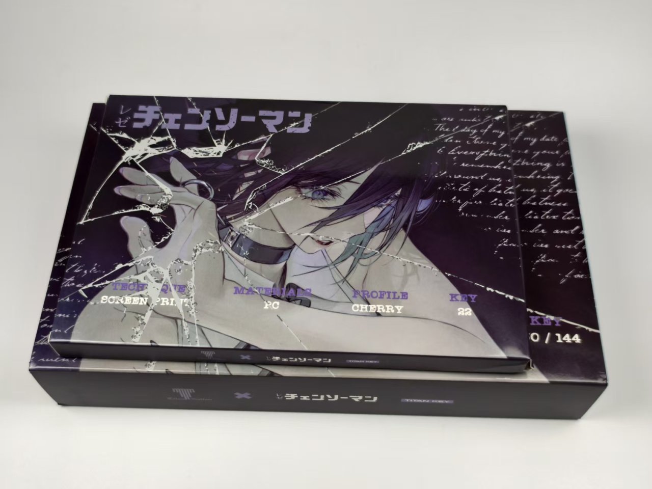 就在最近,泰坦國度家出品了一款全新鍵帽主題—電鋸人蕾賽,其外觀對原著漫畫進行了高度還原,設計師深刻把握住了這一特質,將蕾賽的外觀特點與其獨特的情感特點融入到鍵帽當中,其中鍵帽整體採用了深邃的紫羅蘭作爲基準色,這一色調與蕾賽的紫發相呼應,同時搭配鍵盤自帶燈光,彷彿把人帶回電次與蕾賽相遇於祭典中的那個煙花下的吻,而且這款鍵帽在一些常用鍵採用了鮮明的主題特色設計,在回車鍵上繪製了蕾賽的半身照,讓人一眼就能看到突出的主角,同時將ESC鍵設計成了蕾賽變身後的魚雷頭部,戰鬥風格滿滿。