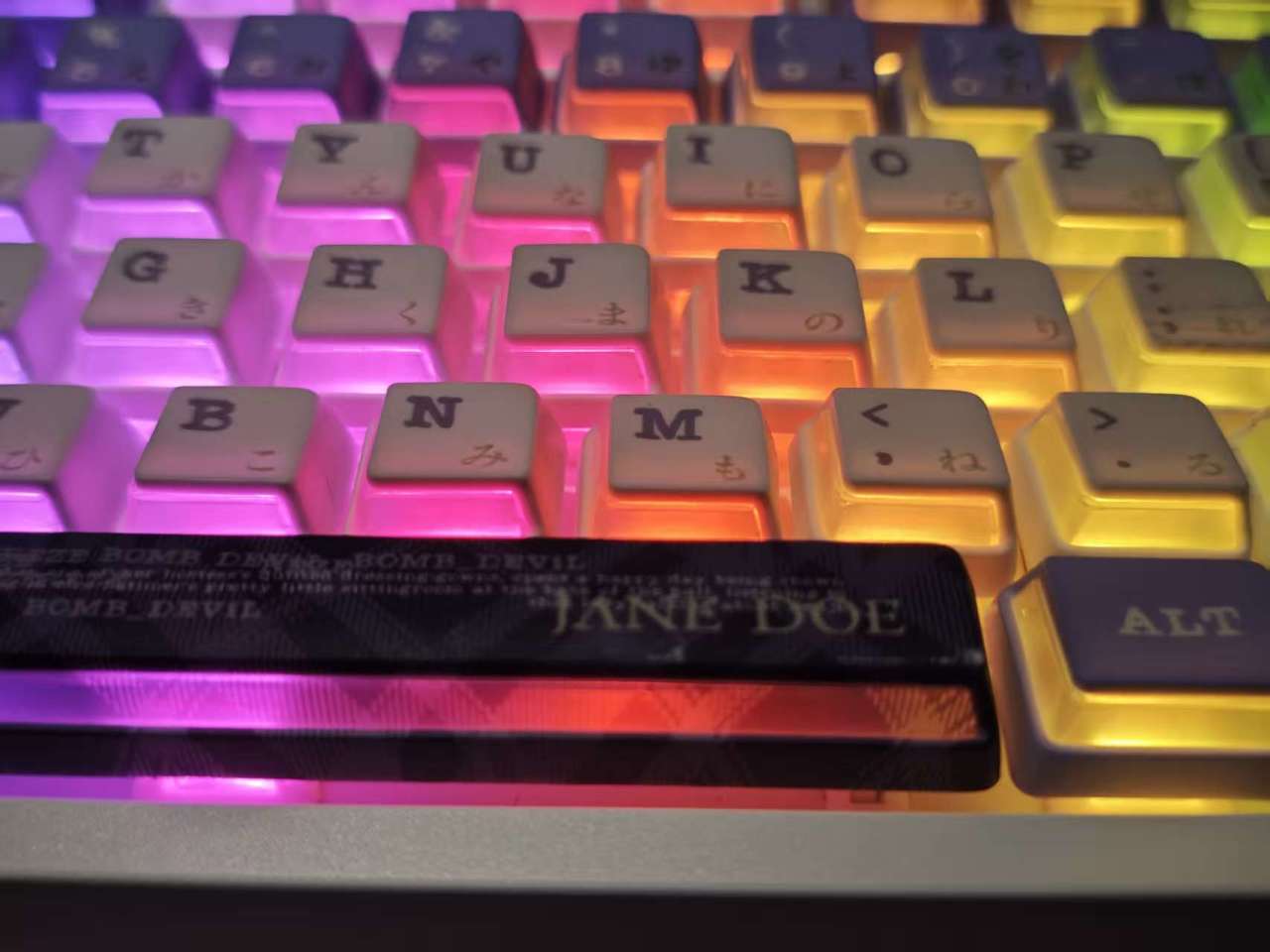 其鍵帽整體採用了熱昇華工藝處理,這一技術使得鍵帽上的圖案與文字顯示更加細膩與清晰。同時該技術使得油墨在高溫下滲透到鍵帽表層,因此不會像傳統油墨技術那樣容易脫落,鍵帽使用壽命更加長久。這種技術同時讓鍵帽表面不會摸起來有凸出,讓玩家就算長時間使用或者碼字也不會有異物感。如果你覺得核動力透光度不能滿足需求,還可以考慮PC增補鍵帽,鍵帽的花紋與圖案與原版無異,但是全透光的材質使得在視覺上更加明亮,更加動人。