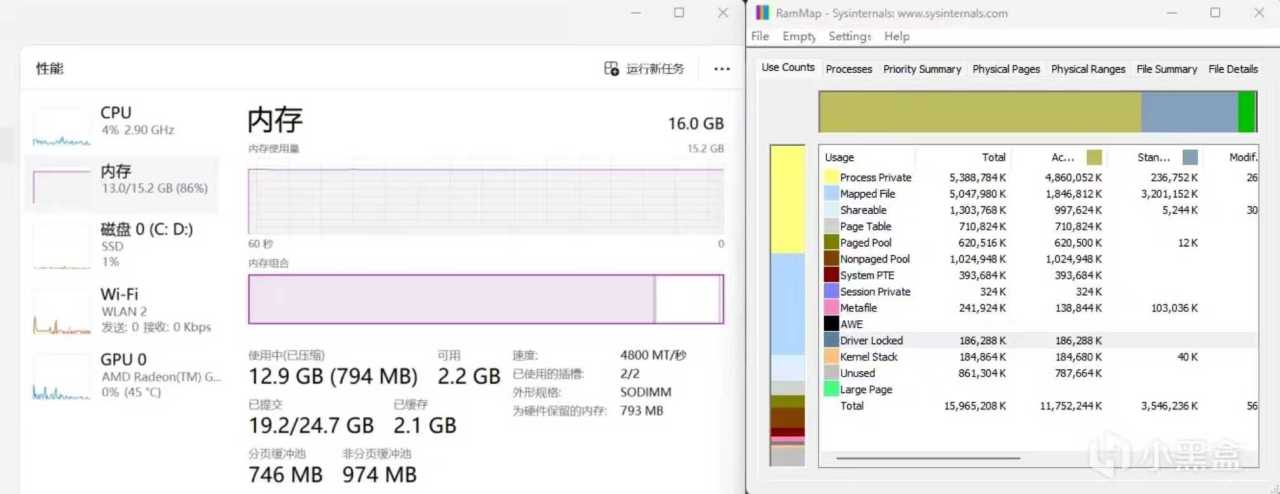 之前買過一臺16GB內存的輕薄本,長時間不關機+軟件多開後,內存回收出問題了,直接被拉爆,最後得隔一段時間重啓或者用RamMap釋放。