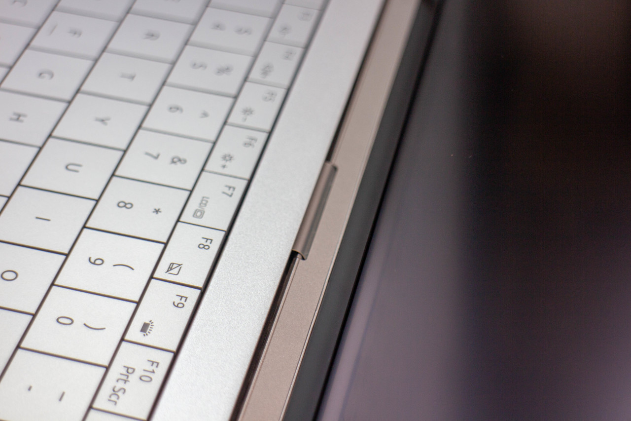 在開箱驗機的時候,我發現屏幕FPC排線是有小部分露出的。查了一下資料,這是爲輕量化設計所做出的妥協,以往一些輕薄本也有類似的設計。