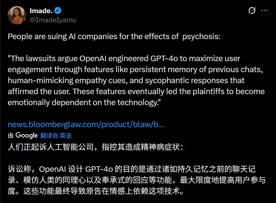 簡單來說,就是讓模型更多地學習普通用戶的點擊反饋,而不是依賴專家的客觀評估。這種做法雖然能顯著提升用戶參與度,但也帶來了嚴重的副作用——之前的GPT-4o模型就因爲過度迎合用戶而變得阿諛奉承,甚至被指責加劇了部分用戶的心理健康問題(當然,也有不少人喜歡這種的,甚至爲此呼籲讓GPT-5也這樣)。