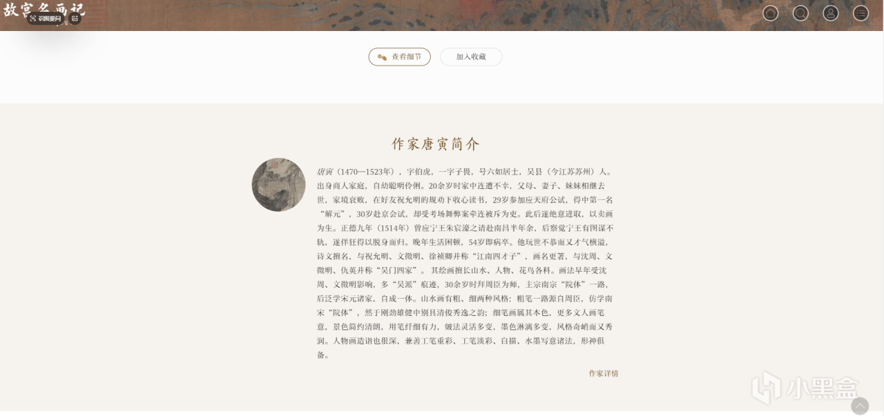 頁面裏還有畫作的創作背景、作者生平介紹,平時刷手機累了翻幾張,既能靜心又能漲見識。