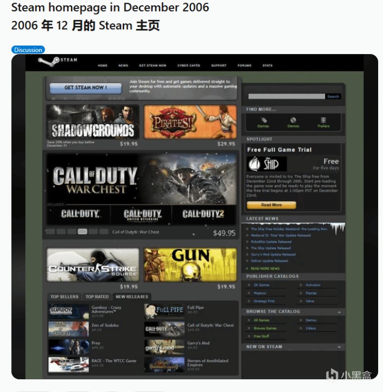 近日,Reddit上一篇“2006年12月Steam首页” 的帖子意外走红,楼主分享的一张略带包浆的老截图,展示19年前的Steam首页是什么样子的,引发全球玩家强烈共鸣。