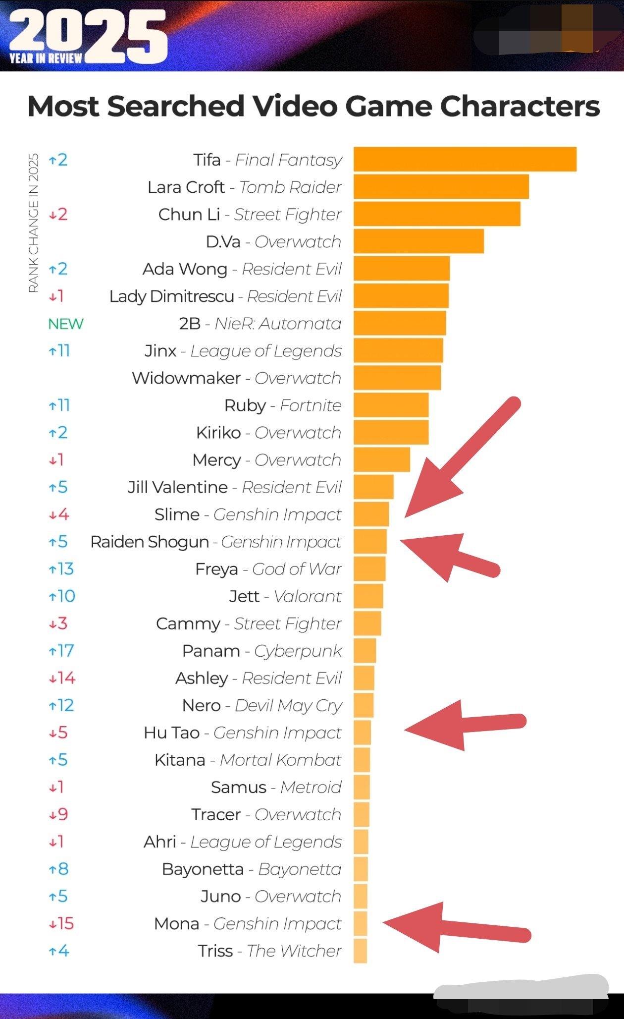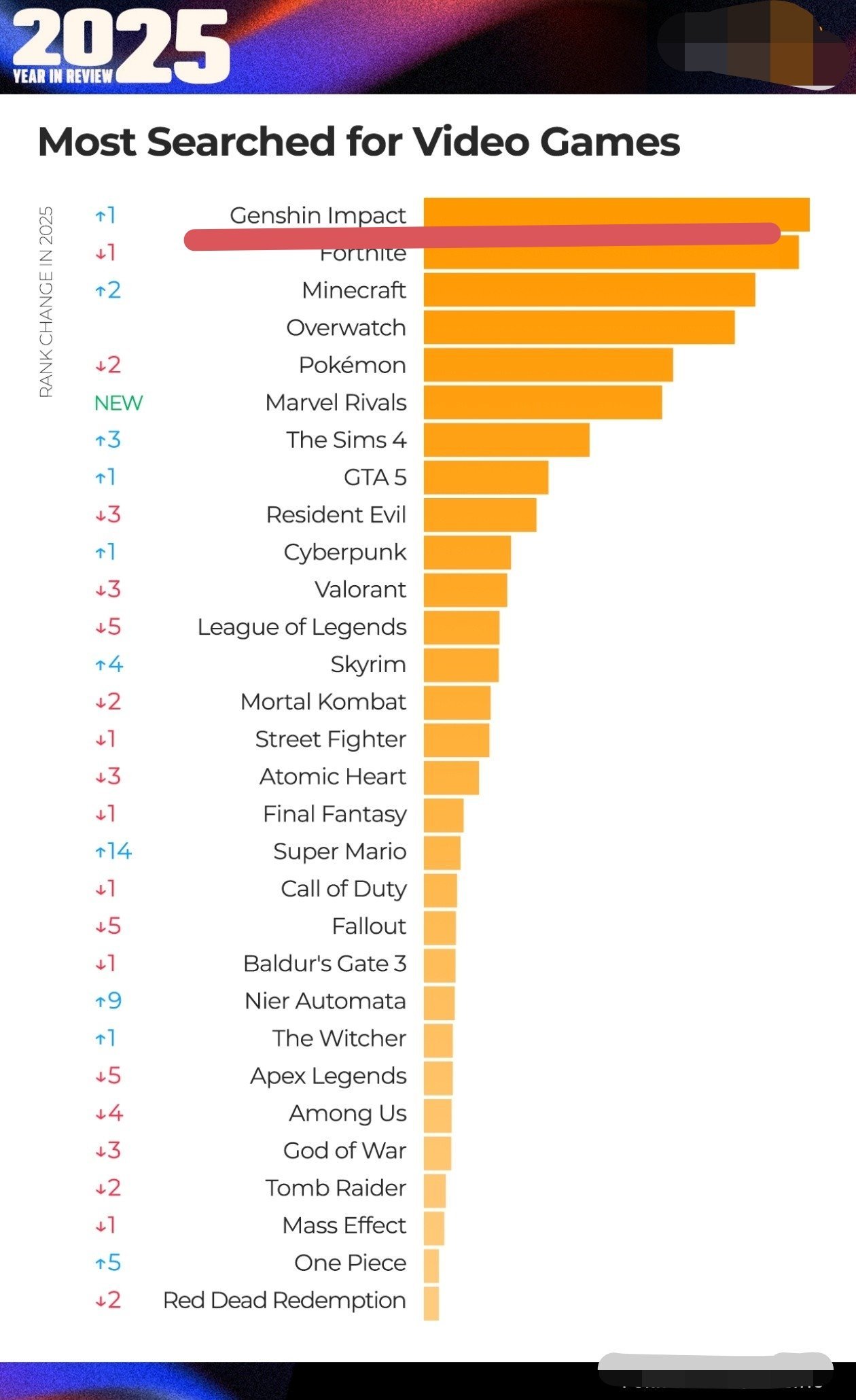 原神登顶某站2025年度游戏搜索量榜首|这难道就是传说中的二次元第一生命动力吗😎
