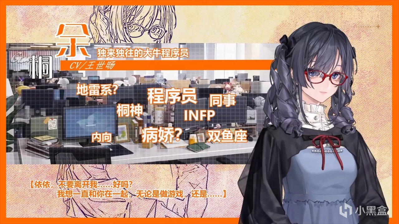 似乎還在自己做遊戲,看起來不太會寫劇本。正好你倆就這樣辭了這逆天工作,一起去做獨立遊戲吧,你寫劇本她做程序——真是雙宿雙飛~