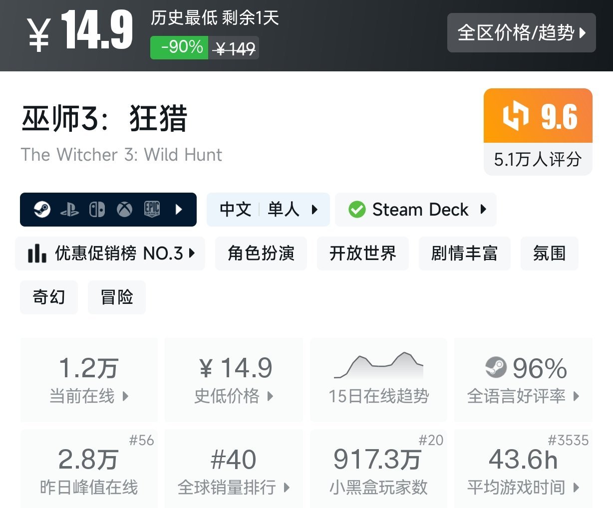 2.巫師3:狂獵