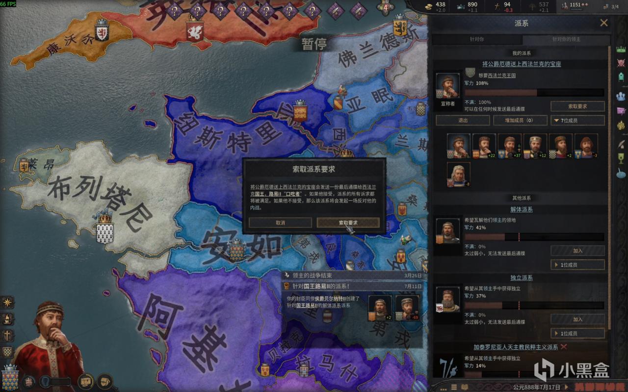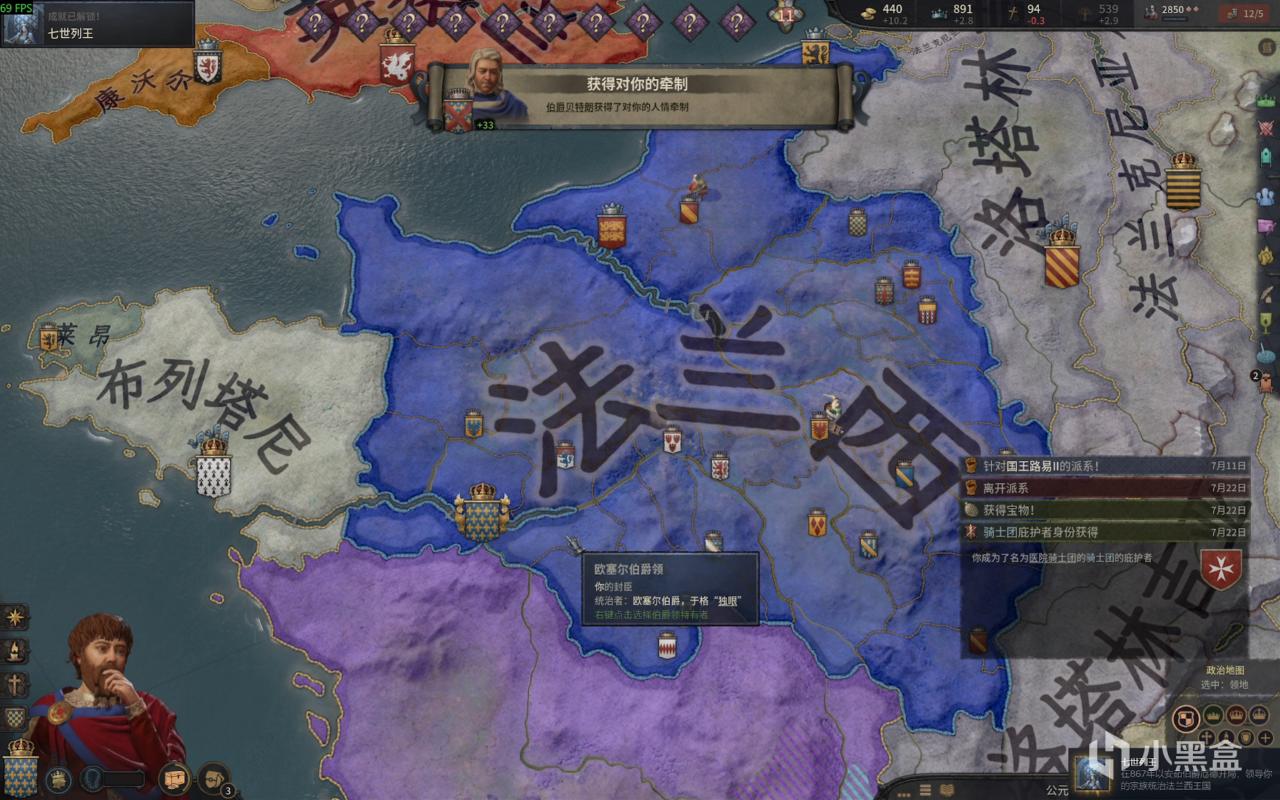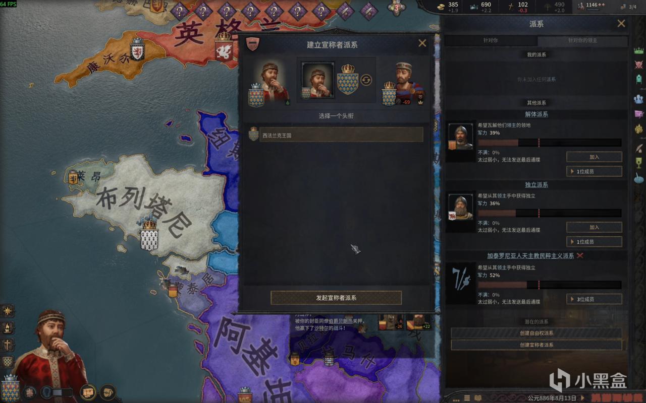 拿到西法兰克王国的宣称之后打开派系,选创建宣称者派系,选自己。