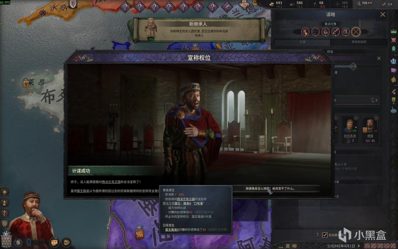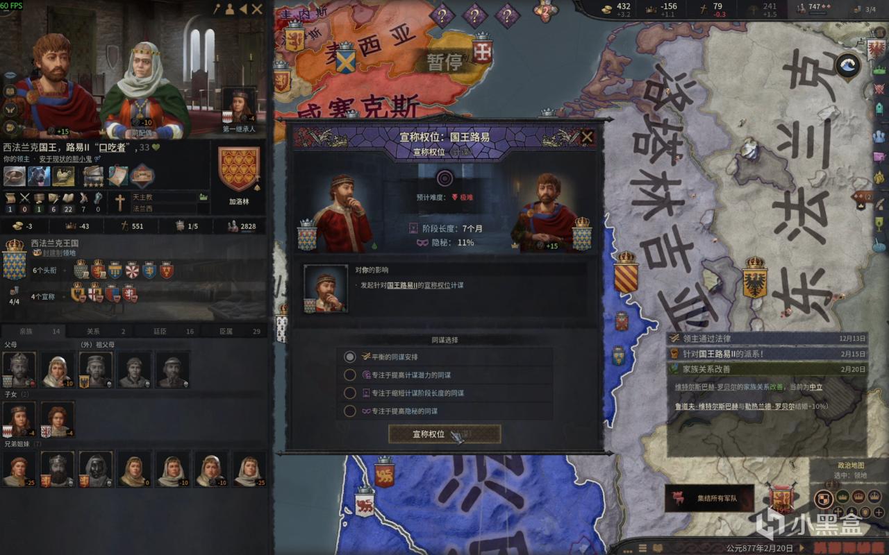 拿完公爵头衔,走时间到成年后,点管理右线的能者居之,拿可以针对你的领主使用宣称权位计谋这个互动