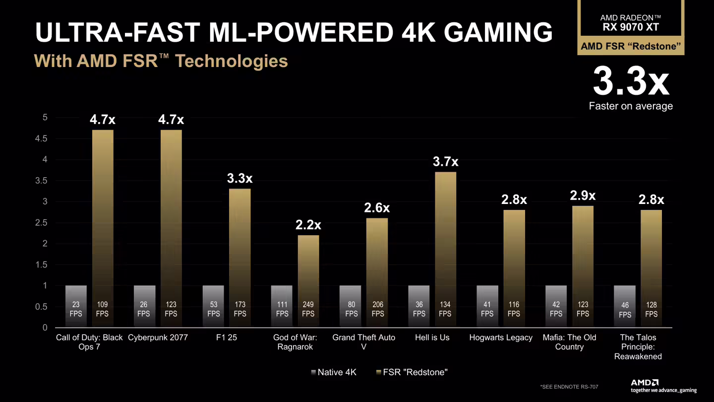 FSR 'Redstone' 是一项仅限 Radeon RX 9000 系列 "RDNA 4" 显卡、基于机器学习 (ML) 的游戏体验提升技术,包括四大组成部分: