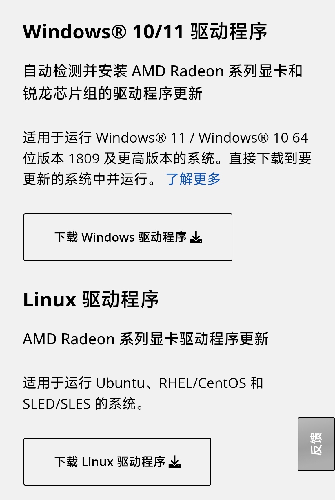 或者自行复制以下链接进入浏览器https://www.amd.com/zh-cn/support/download/drivers.html