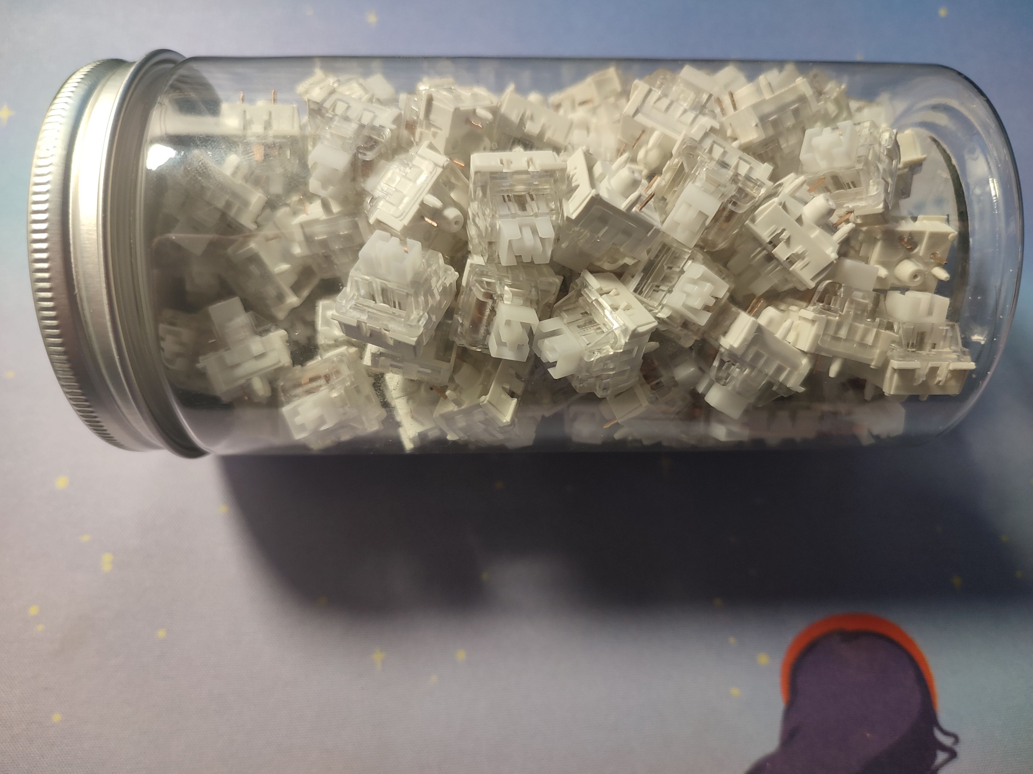 发狗的一款类银线性轴,声音很脆,目前还没上手试,首发预购是1.18没记错的话,这次算是捡漏了,群友有个预购买了一千颗的,我没那么富就买了一百一十颗也够用了