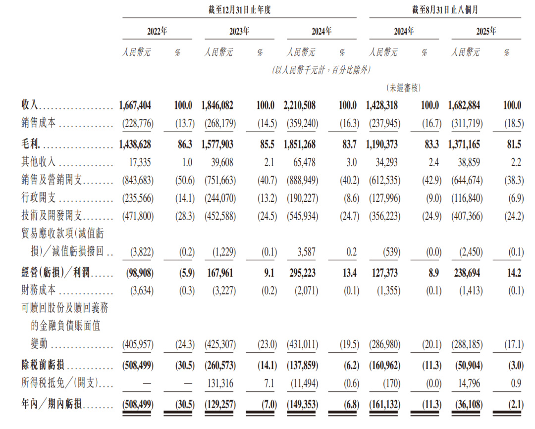 2022 年至 2024 年,收入从 16.67 亿元 涨到 22.11 亿元,增长率超过 15%。2024 年及 2025 年前 8 个月的经调整净利润分别为 3.37 亿元和 2.86 亿元。