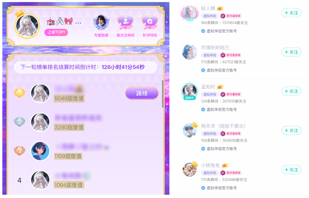 不少人真的会为这些虚拟人刷榜,像一名男虚拟人的榜一,已经刷到了 5000 多的甜度值( 约等于 800 多元 )。