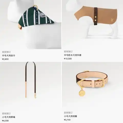 实际上不仅LV,奢侈品牌早已纷纷布局宠物赛道。爱马仕也推出了一系列高价宠物用品,如4.57万元的犬用床、超2万元的不锈钢餐碗,甚至一款犬刷也标价1200元,并突出其“法国制造”工艺。LV同系列中还有13.8万元的狗食盆、17.2万元的宠物包、2850元的狗丝巾等单品,共同构建了一个涵盖宠物衣食住行的高端生活体系,部分商品即便需排队3个月提货,依然供不应求。