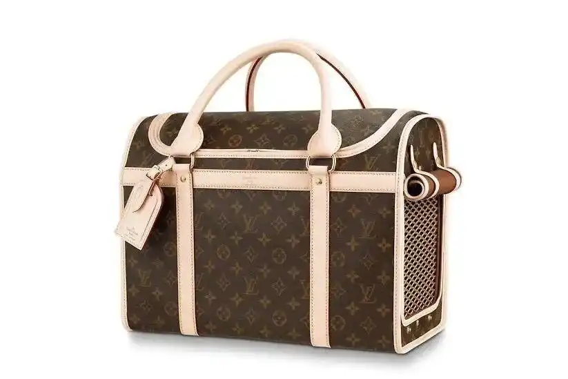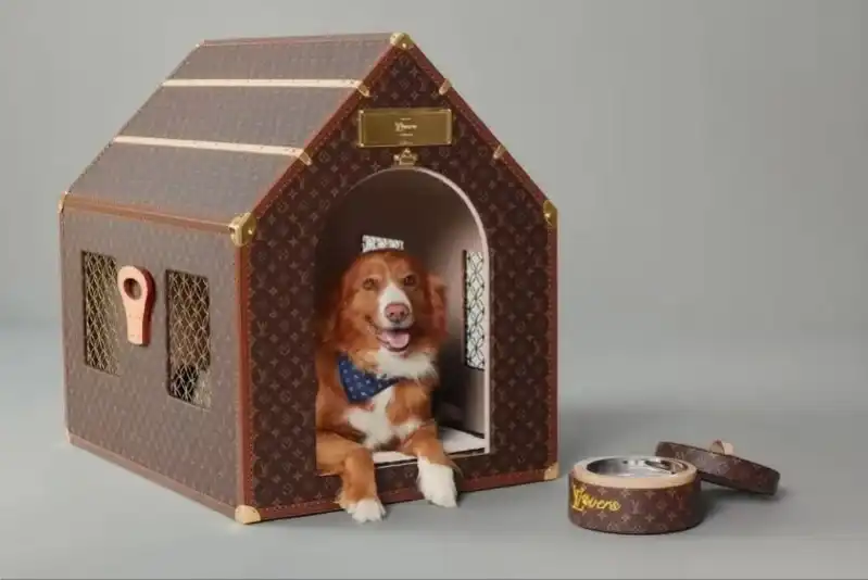该款狗窝覆盖品牌标志性Monogram图案,设计上包含屋顶、可拆卸门,以及定制内衬与通风系统,专为航空携带宠物打造,被形容为“移动的奢华宠物别墅”。