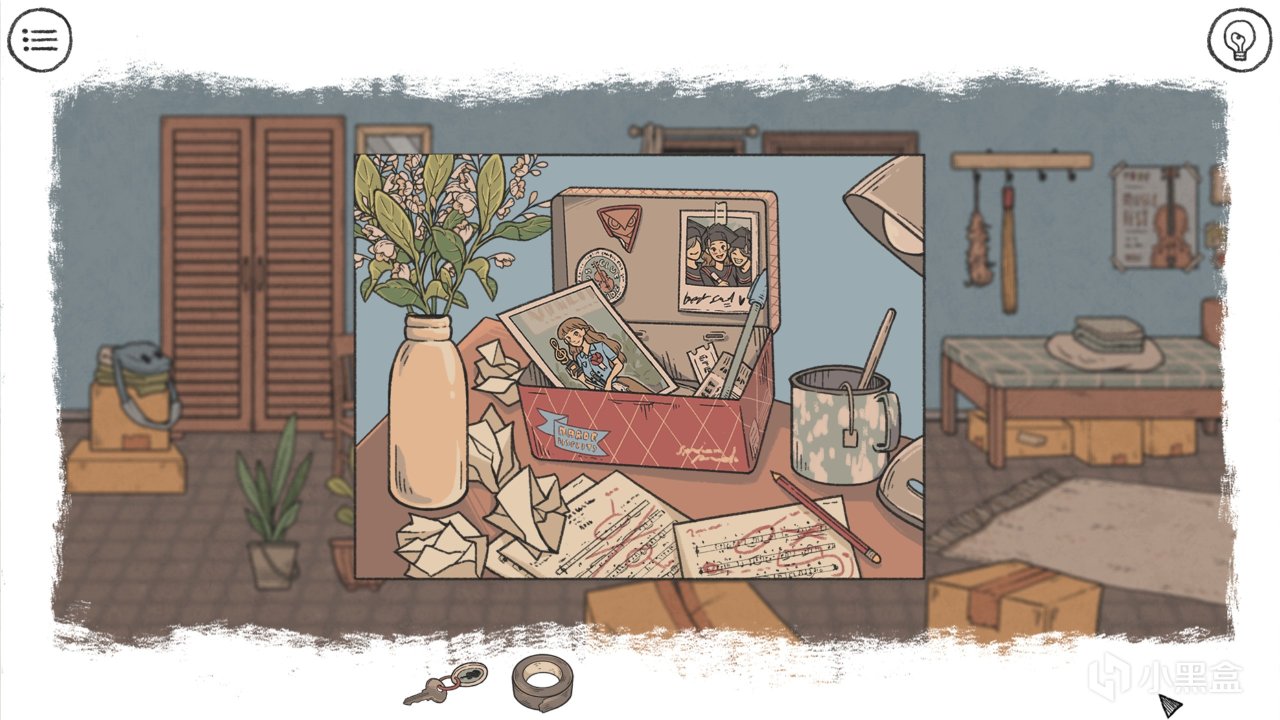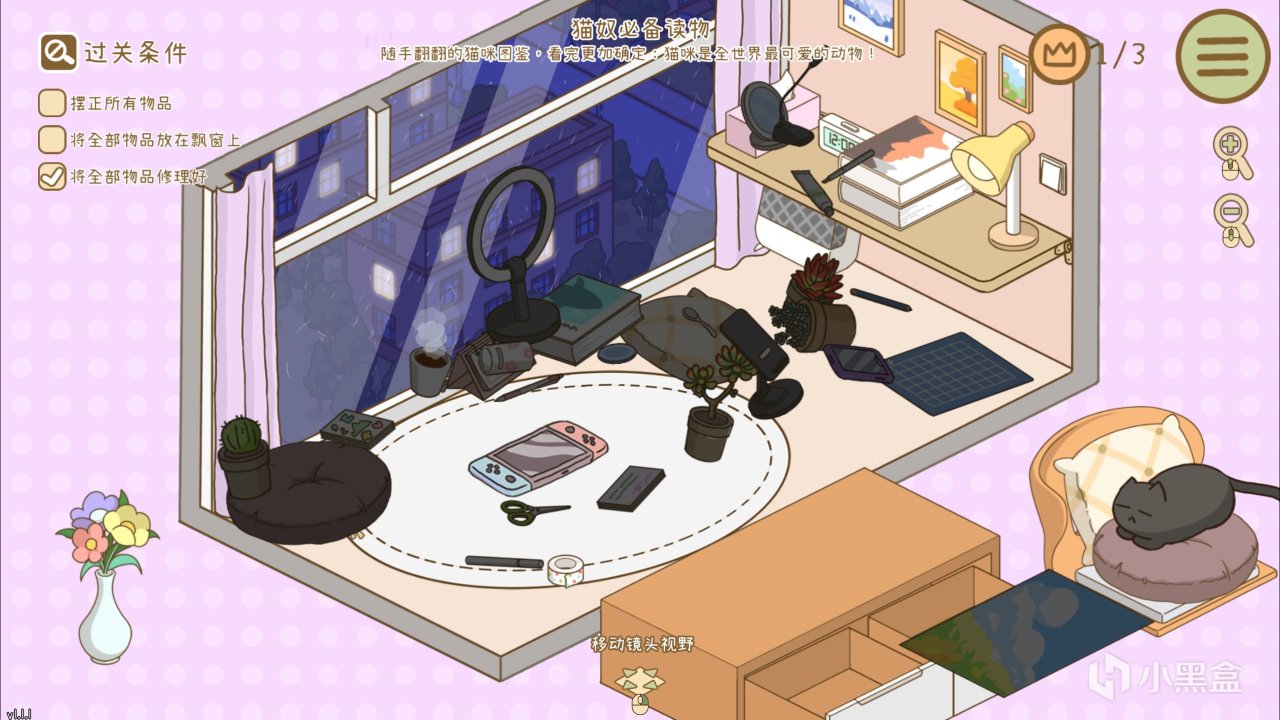 物品疊起來可以整組移動,有自動吸附到位的功能,對強迫症來說非常舒服。並且每個小物件都有自己的一段說明,沒點到的物品也做了明暗上的區分。