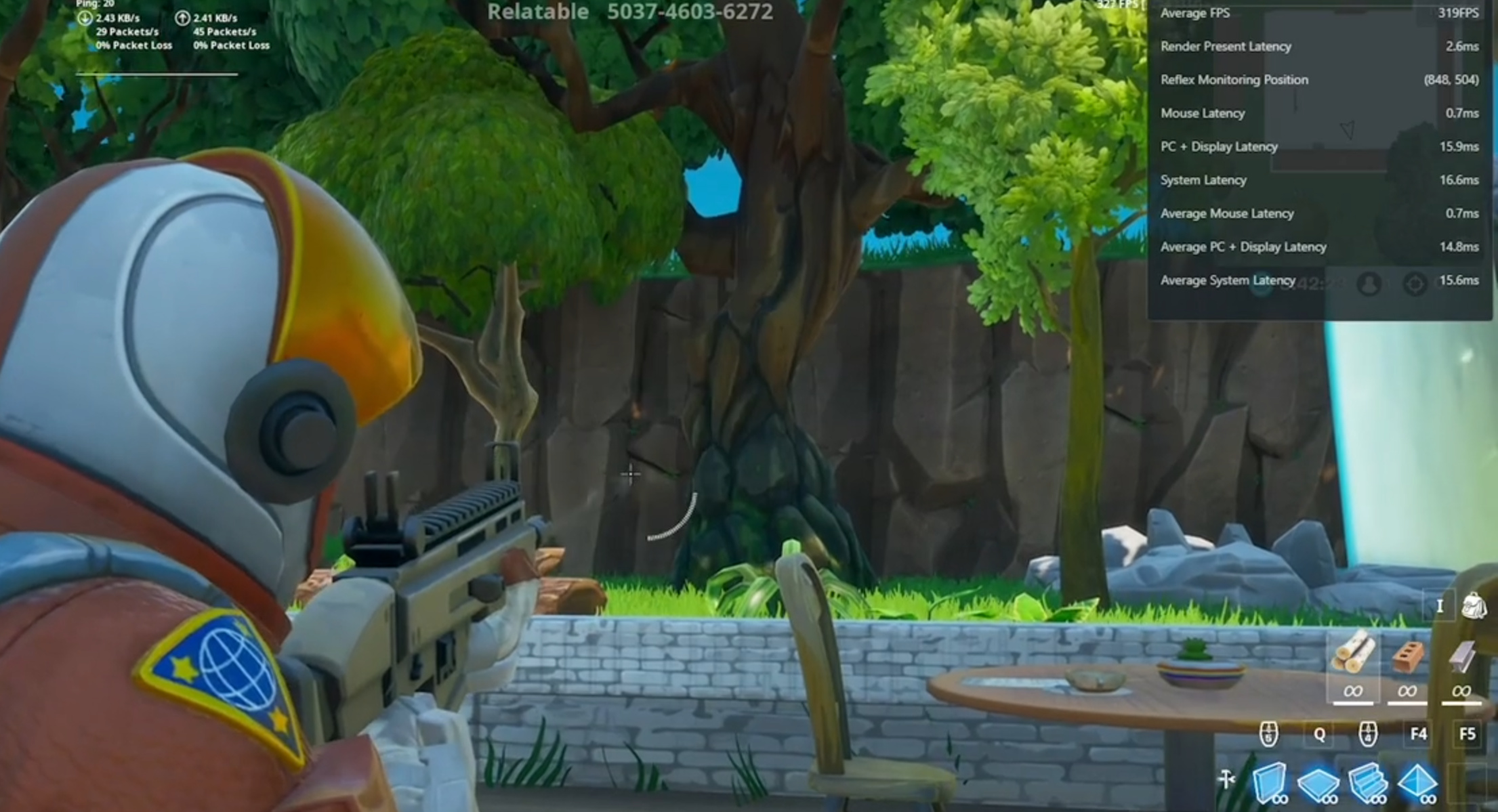通过《堡垒之夜》的实际对比测试可以发现,未开启Reflex技术时,游戏的平均系统延迟在35.9ms,启用Reflex后平均系统延迟降低至了15.6ms。20ms的差距对普通人可能不会有太大感知,但是对于职业选手或专业电竞玩家来说,20ms往往能够做到抢先完成击杀,直接影响到比赛的胜负。