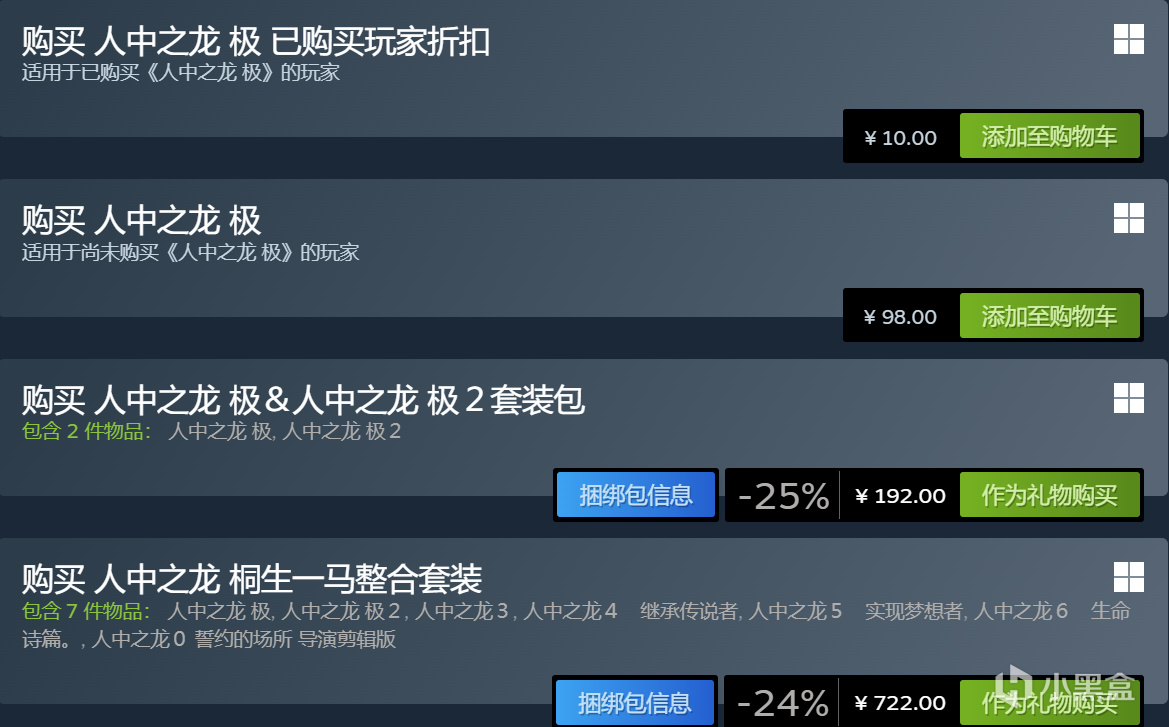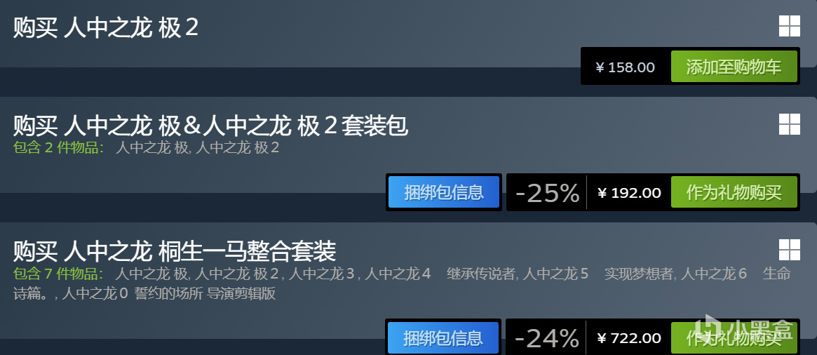 旧版《人中之龙极[传承版]》《人中之龙极2[传承版]》已停售