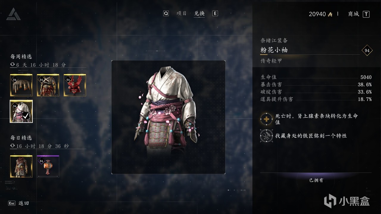 本周依旧五个周常任务,本体四个任务,DLC一个任务,兑换商店已更新。小江樱花衣服,有生之年系列,十分值得一换。更新时间是凌晨,但商店已更新。 以下本周免费兑换的其余商品: