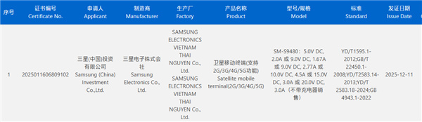 快科技12月12日消息,根据3C认证官网显示,三星Galaxy S26 Ultra已经获得认证,最高支持60W快充。