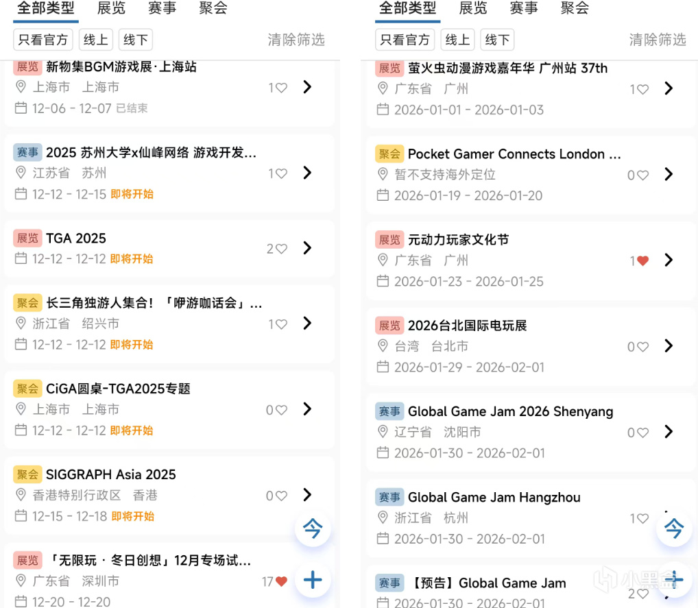 2,游戏开发相关社区/小程序:老牌的有【indienova】中有一个活动日历,新起的【独游开发组队(小程序)】中也新增了个活动日历,有各种游戏开发相关的活动,基本上都是由热心用户主动分享(不过报名存在很强的时效性)