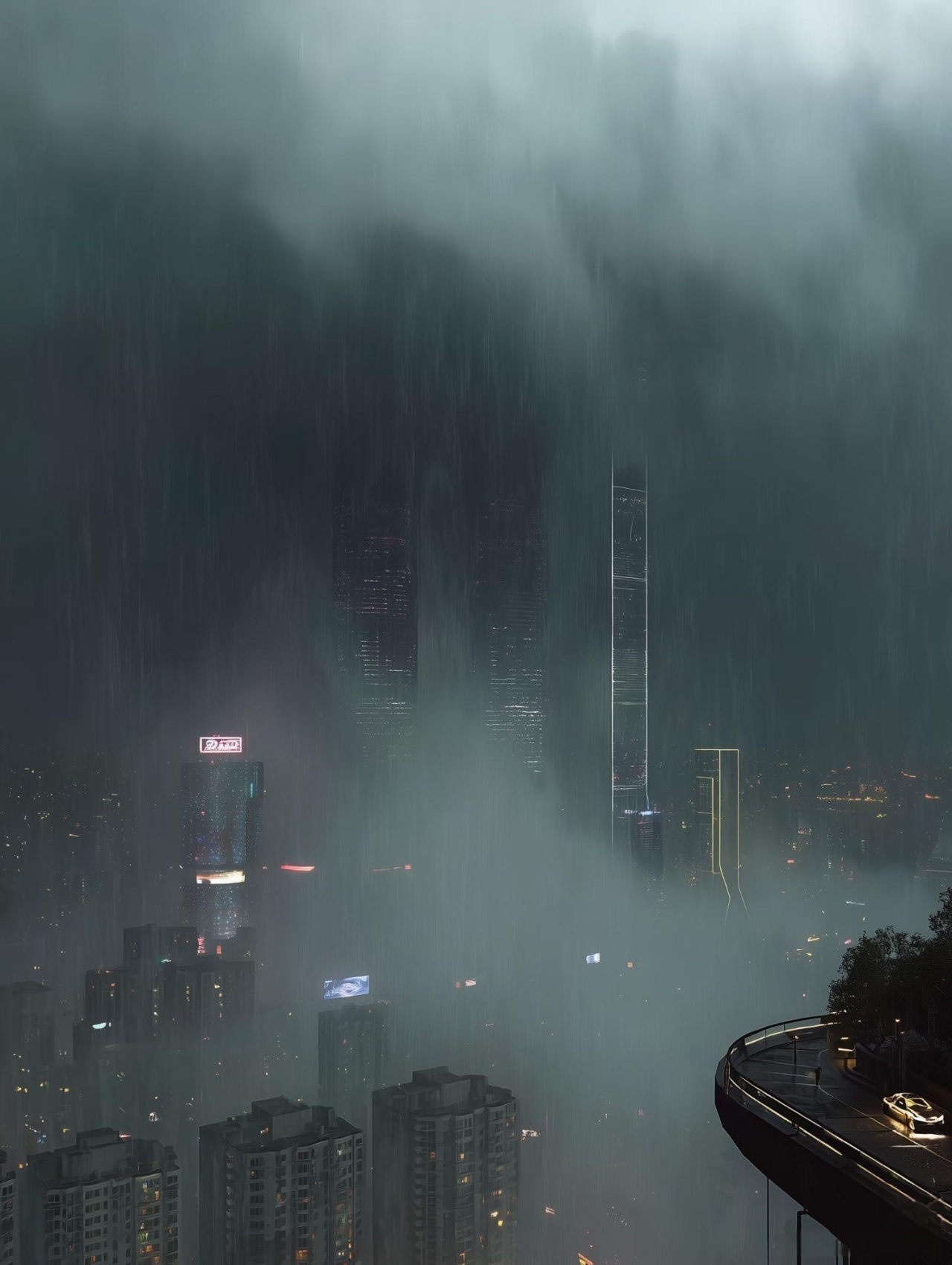 那是一个男性外表的仿生人,脸上缺失了几块圆润的表皮,在灯光下尤为狰狞可怖,他抓着小女孩的衣领,眼里却沾染了一些不舍,也可能是暴雨的低吼,让他害怕了。