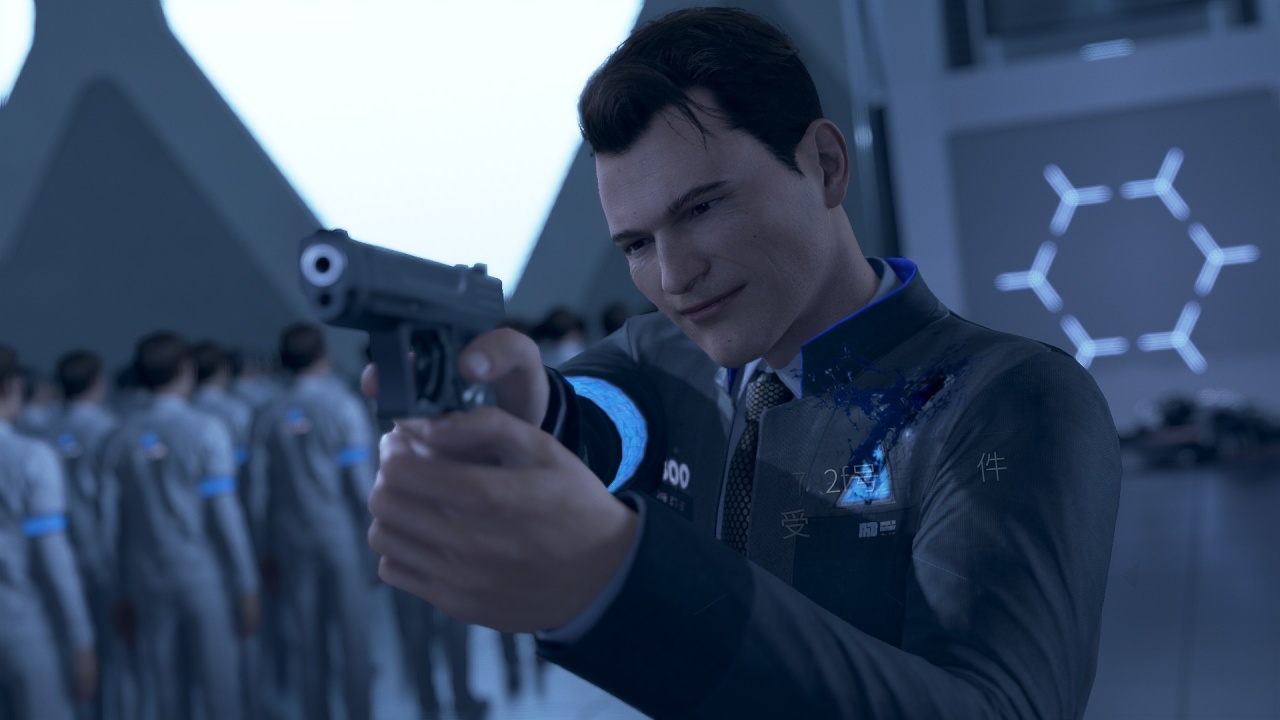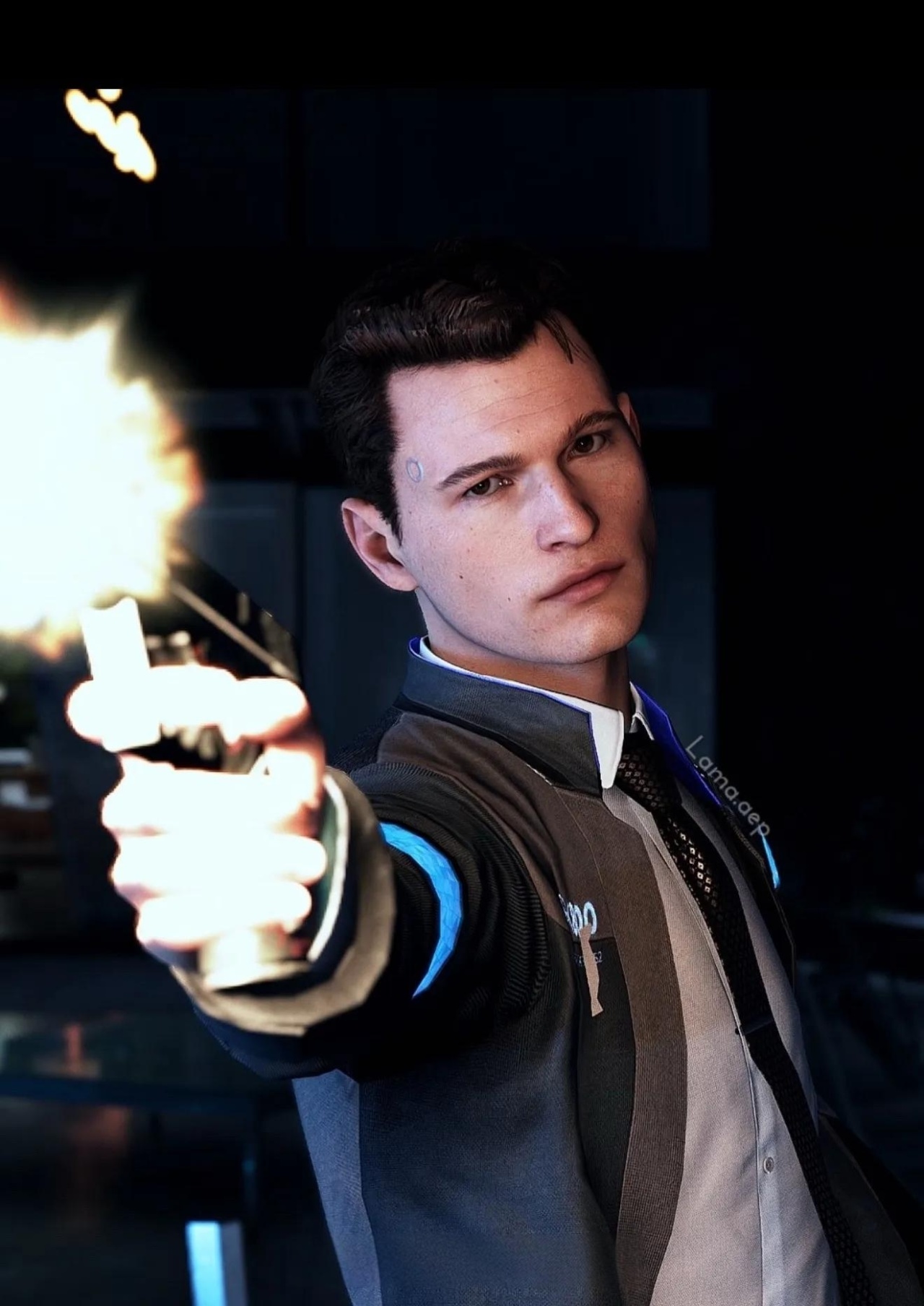 RK1000惊恐地注意到了鼻头滴下的蓝色液体,康纳的枪正中眉心,让汉克的人中都开始发颤。